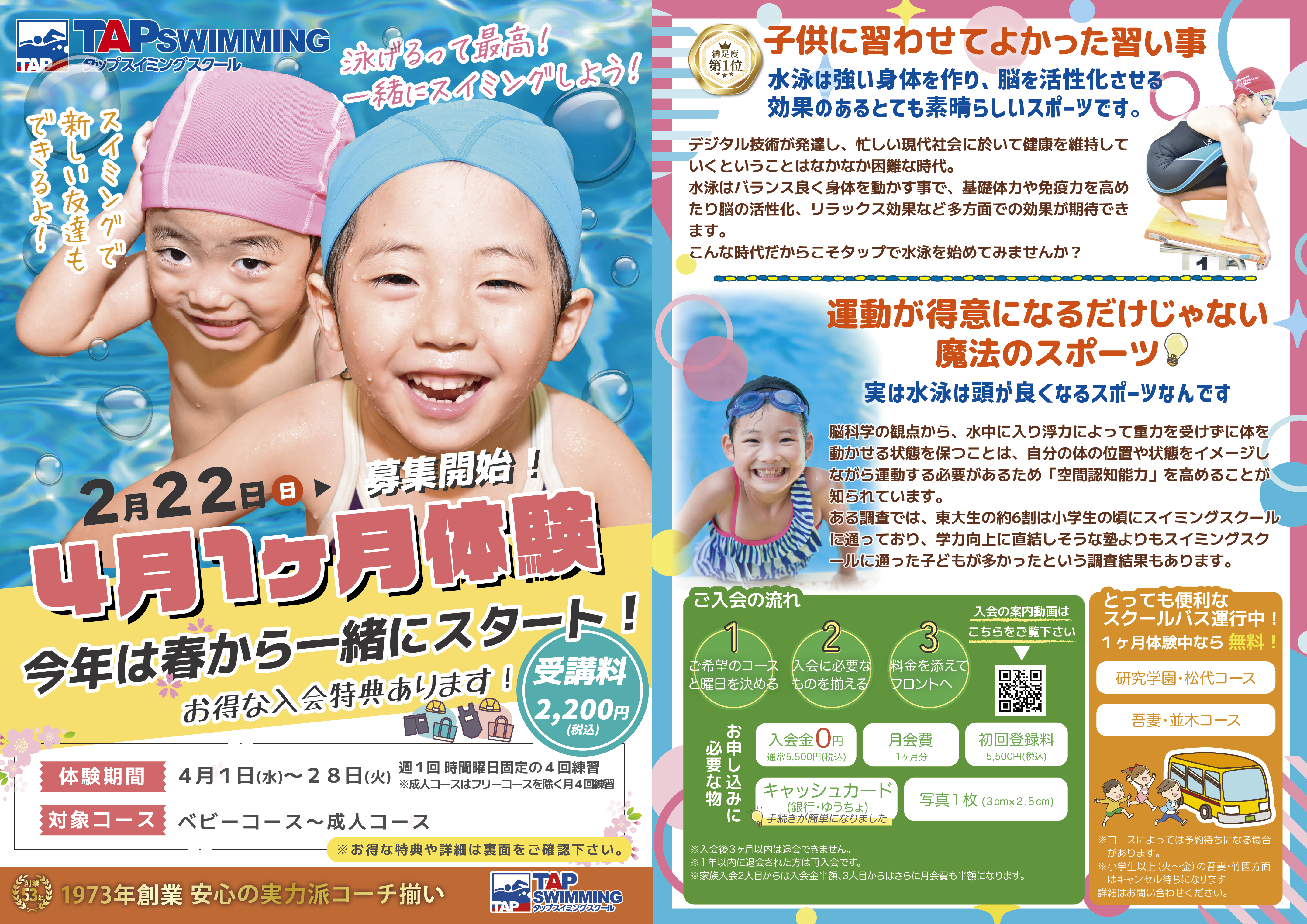 【筑波学園スクール】4月1ヵ月体験のお知らせ