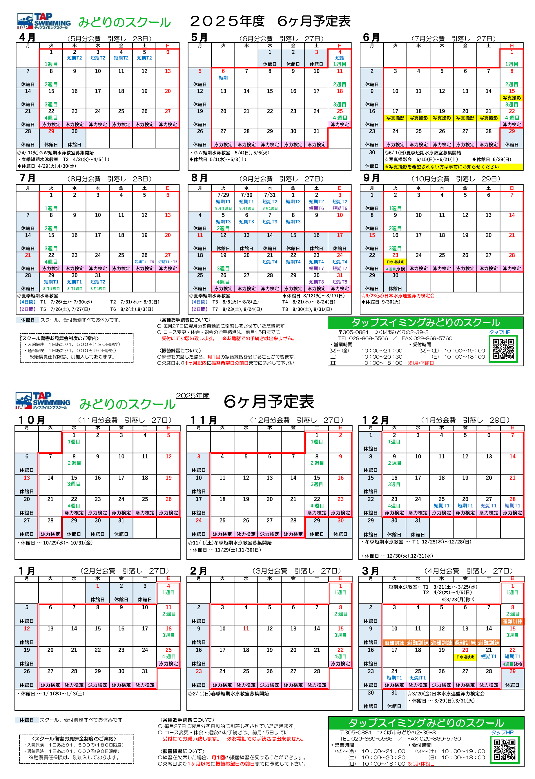 | 施 設 | 25m×6コース 10m×4.5m(幼児用プール) シャワー 採暖室 体操室 |