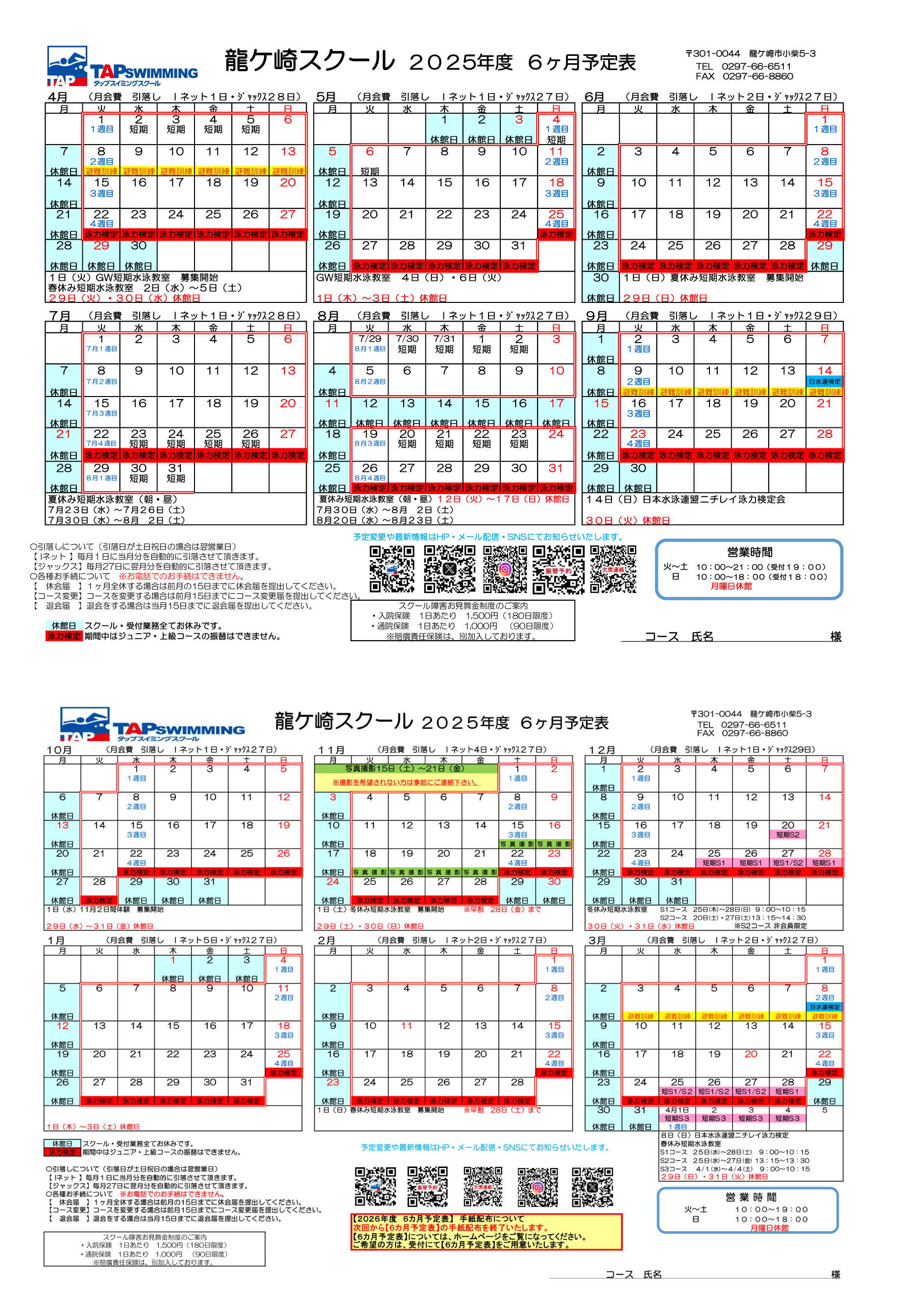 スクールバス | 藤代・佐貫コース (火・木) 城ノ内・藤ヶ丘コース (水・金) 美浦・江戸崎コース (土) バス管理費 1000円(税別) スクールバック 2200円(税別) |